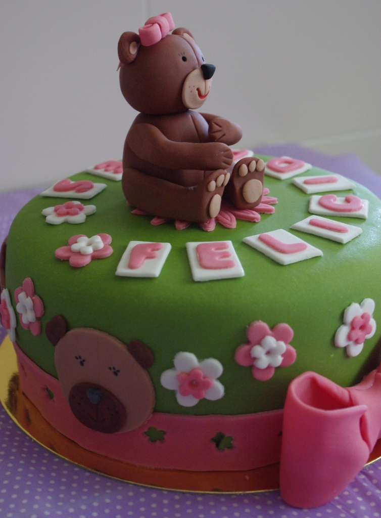 Le puse unos ositos en la parte lateral adornando con las florcitas.